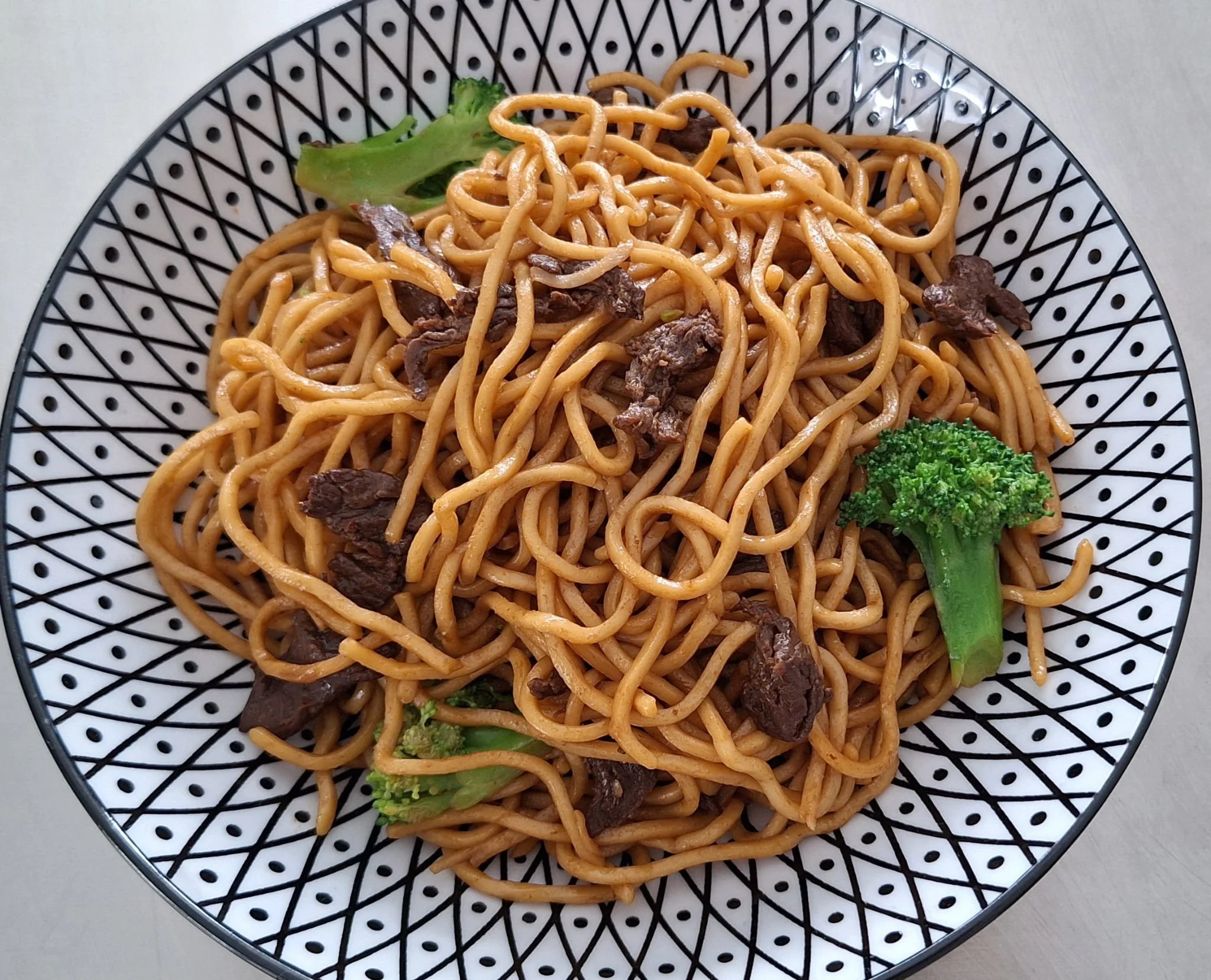 Morceaux de porc sautés au wok avec des légumes. Servi avec du riz jasmin parfumé.